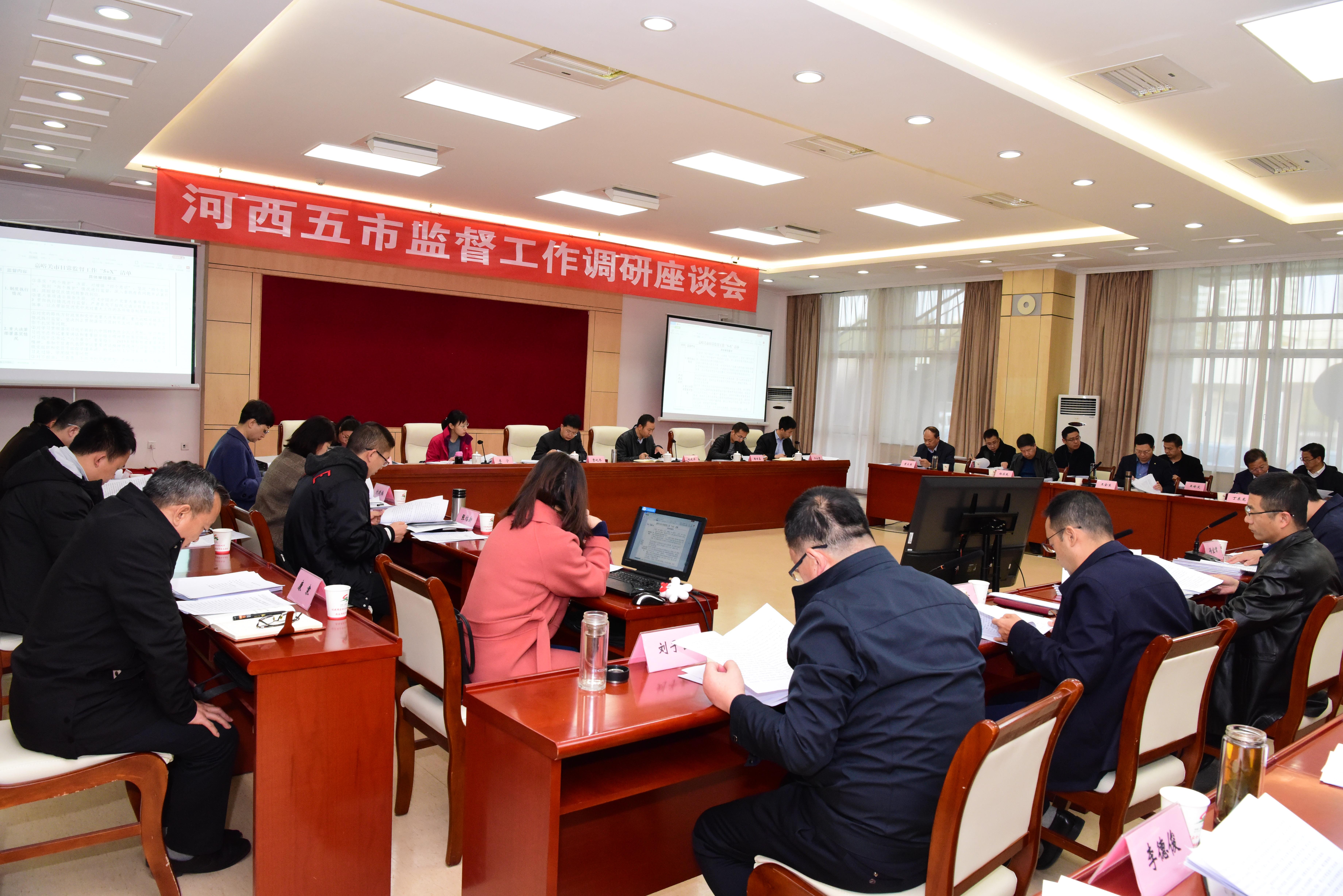 河西五市监督工作调研座谈会在我市召开,图为座谈会现场。
