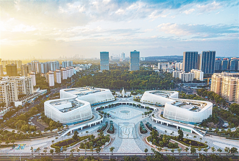 海南自贸港以“零关税”、低税率、简税制和“五自由便利和一安全有序流动”为主框架的自由贸易港政策制度体系基本构建,并不断滚动升级、实现效能释放,助推海南经济高质量发展。图为海南自贸港重点园区——洋浦经济开发区景色。 新华社记者 蒲晓旭 摄