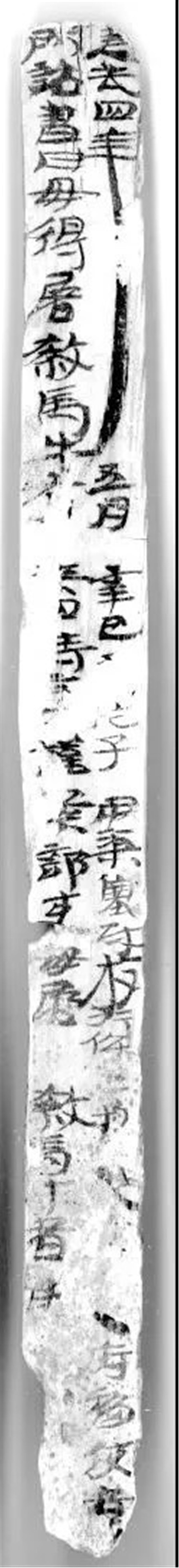 此简1974年出土于甲渠候官遗址第22号房址内。呈木牍1枚,长22.8厘米,宽约1.8厘米,为正反两面书写,存字55个,背面只是书吏“掾谭”的签署。该文书的出土,对研究东汉初年窦融统治河西时期对畜牧业采取的保护发展政策有重要参考价值。现藏甘肃简牍博物馆。