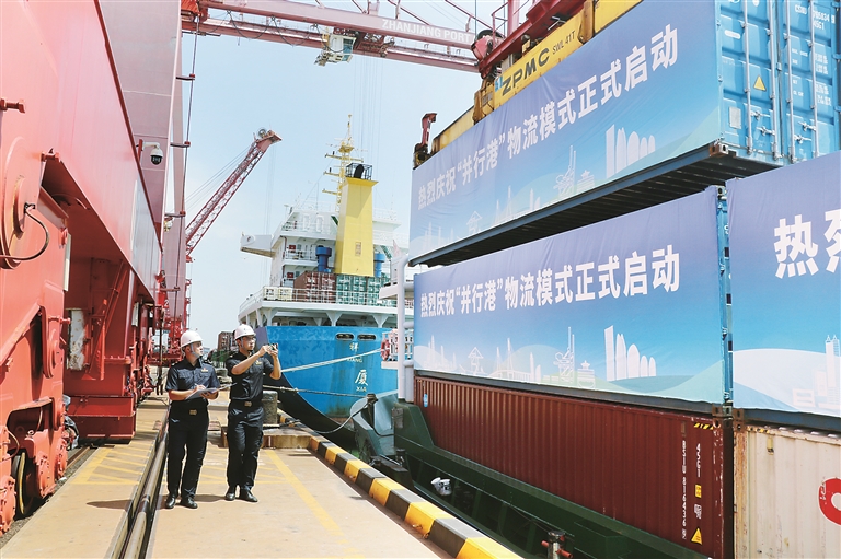 近日,粤琼三港“并行港”物流模式改革试点首票业务成功开通。模式成熟运营后,湛江港、蛇口港、洋浦港间集装箱物流成本将大幅降低,为粤港澳大湾区和海南自贸港联动发展增添新动能。新华社发