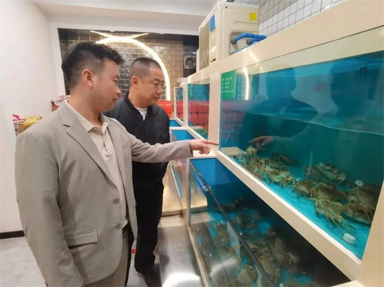 明察暗访组在某螃蟹专卖店了解销售情况。
