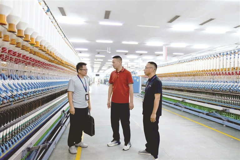 福建省宁化县纪委监委聚焦营商环境痛点难点,组织纪检监察干部深入一线,摸排职能部门和党员干部在服务企业发展中存在的不作为、慢作为、乱作为等问题。图为近日,该县纪检监察干部在某纺织企业走访了解有关情况。徐婷 摄