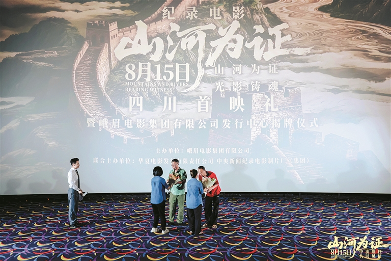 8月14日,纪录电影《山河为证》四川首映礼在成都举行。图为映后互动环节,抗战老兵亲属登台接受献花,现场掌声经久不息。 中央新闻纪录电影制片厂(集团)供图