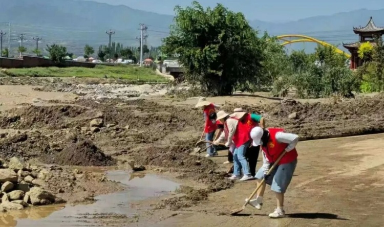 兰州市榆中县“8•7”山洪灾害发生后,全县纪检监察干部“战”在一线,清理大河湾河道淤泥。