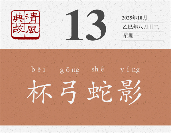 《晋书•乐广传》载:乐广在河南做官时,有一位很好的朋友,分别很久都没有再来。乐广感到奇怪,经打听才知道原因:“前在坐,蒙赐酒,方欲饮,见杯中有蛇,意甚恶之,既饮而疾”。意思是,前些日子来做客,承蒙你的厚意,我正端起杯子喝酒的时候,看见酒杯中有一条蛇,虽然心里十分厌恶,但还是喝了下去,从此之后就一病不起了。