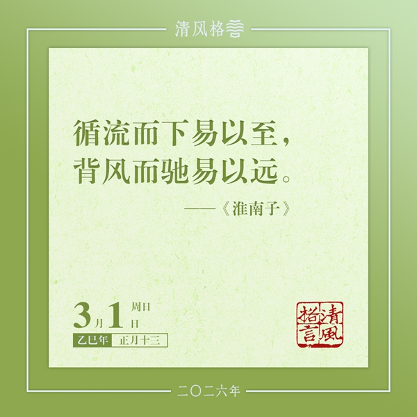 在古书《淮南子》中有句格言:“循流而下易以至,背风而驰易以远”,是说船如果顺流而下,更容易抵达目的地;马如果顺风而行,更容易奔向远方。这里“背”,是以背依附之意,突出了马背奔跑时的流动之态。古人虽不十分清楚其中的力学原理,但在生活的沉淀之中,早已从常识里总结出一条规律,那便是干任何事,都要善于把握有利条件,学会顺势而为。